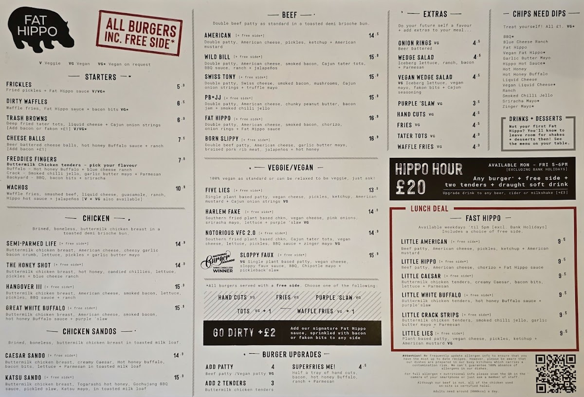 Welcome to Fat Hippo Birmingham, a vibrant dining destination located at 11 Bennetts Hill. This eatery has quickly become a favorite among locals and visitors alike, offering a delectable menu that celebrates the artistry of burgers. Diners rave about the incredible flavor and quality of the food, with standout favorites like the perfectly crafted burgers and unique waffle chips enticing every palate.